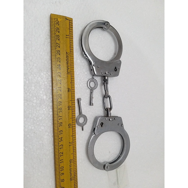 Heavy Duty Police Handcuff | Carbon Steel Made Solid | Theatre Play Silver Plated Police (1819)
